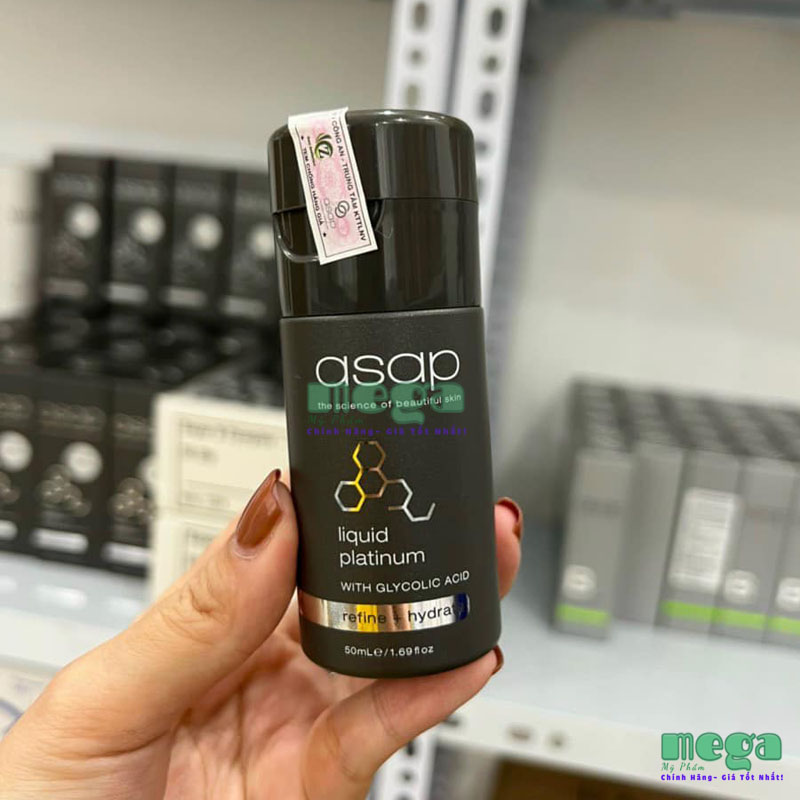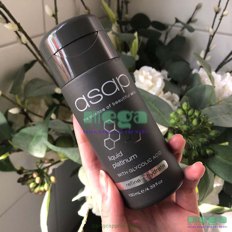 Sản phẩm nước thần kỳ Asap Liquid Platinum mang lại hiệu quả tối đa như tên gọi của nó nhờ khả năng đánh tan tế bào chết, kích thích sản sinh collagen giúp tăng khả năng thẩm thấu của các sản phẩm thoa sau đó.