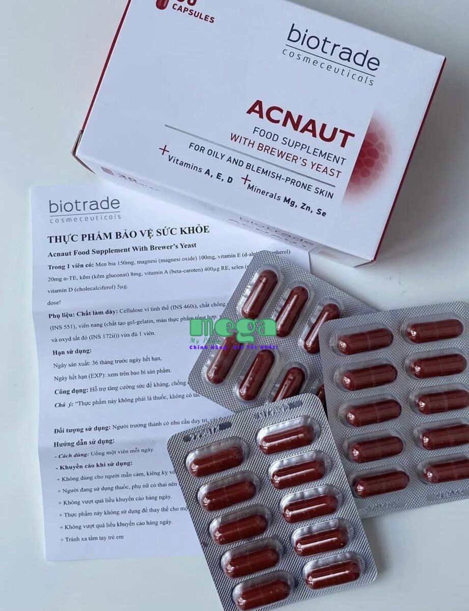 Biotrade Viên uống Acnaut Food là sản phẩm bổ sung dành cho da thường đến da dầu, bị mụn trứng cá. Hầu hết các bác sĩ da liễu thay vì kê đơn thuốc kháng sinh, kháng viêm cho bệnh nhân mụn thì nay lại chuộng viên uống trị mụn Biotrade Acnaut hơn.