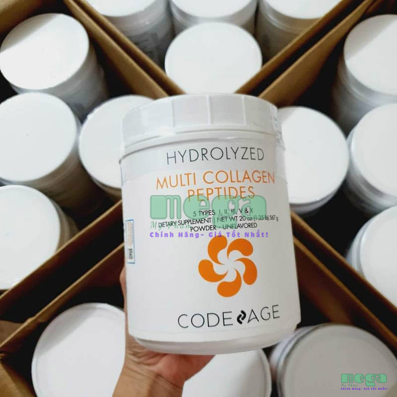 • Bột collagen code age là bột collagen dạng uống chứa tới 18 loại axit amin trong đó có 8 loại thiết yếu, có khả năng tổng hợp nhanh chóng và thành công collagen loại I, II, III, V và X.
