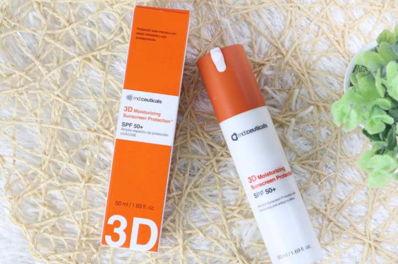 Một trong những dòng sản phẩm chăm sóc da bán chạy của Md: Ceuticals là kem chống nắng dưỡng ẩm bảo vệ da sau laser Md: Ceuticals 3D Moisturizing Sunscreen Protection SPF50+.