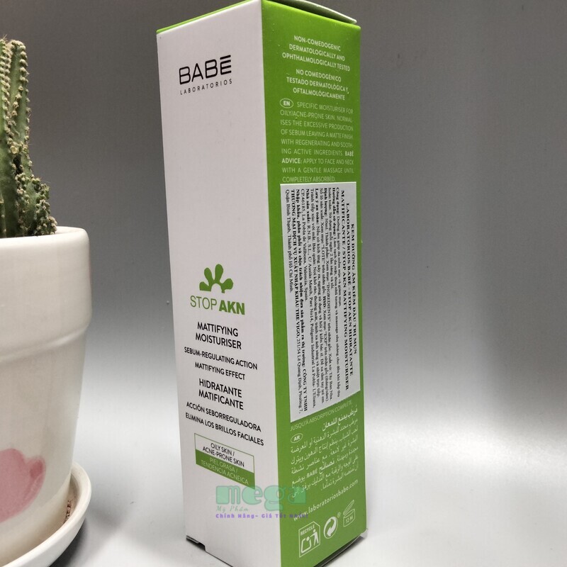 \n\nNgay cả khi da của bạn là da dầu hay bị mụn, bạn nên luôn thoa kem dưỡng da mặt để tránh tình trạng da bị mất nước và làm trầm trọng thêm tình trạng của nó. Stop AKN là dòng sản phẩm đặc biệt dành cho da dầu mụn. Babe Stop AKN Mattifying Moisturizer là kem dưỡng ẩm thẩm thấu nhanh, không gây nhờn dính. Công thức chứa 4% Niacinamide giúp kháng viêm, trị mụn hiệu quả. Ngoài ra, sản phẩm còn chứa các hoạt chất giúp điều tiết bã nhờn, tẩy tế bào chết và làm lành vết thương hiệu quả. Sử dụng như một bước dưỡng ẩm lành tính, an toàn cho làn da bị mụn mỗi ngày.