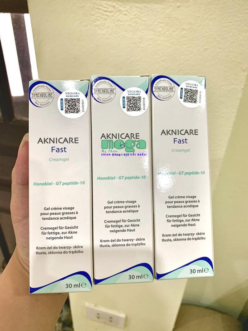 Aknicare Fast CreamGel là dòng sản phẩm giúp kiểm soát sản xuất bã nhờn quá mức ở dạng nhẹ đến trung bình và làm dịu các tổn thương. Công thức cải tiến có tác dụng nhanh chóng và hiệu quả cụ thể ngăn ngừa sản xuất bã nhờn quá mức và sự hình thành không hoàn hảo sau đó của nó.