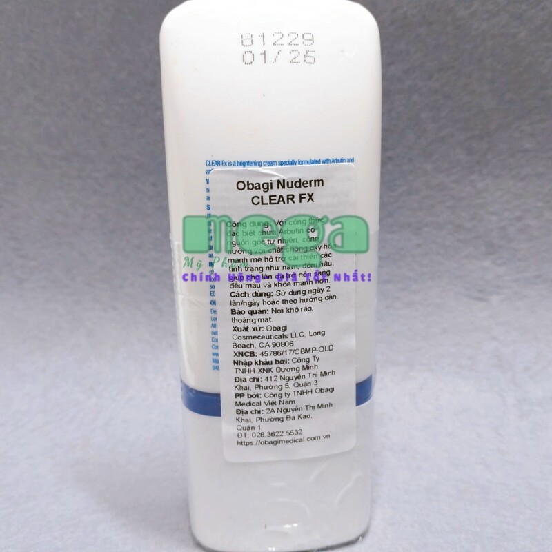 - Một điểm đặc biệt có thể “lấy điểm cộng” tốt từ nhà Obagi cho sản phẩm Obagi Nu-Derm Clear Fx chính là sự thay thế rất thông minh thành phần Hydroquinone bằng 2 thành phần tự nhiên hơn là Arbutin và Vitamin C , đặc biệt dành cho làn da nhạy cảm, dễ kích ứng với Hydroquinone.