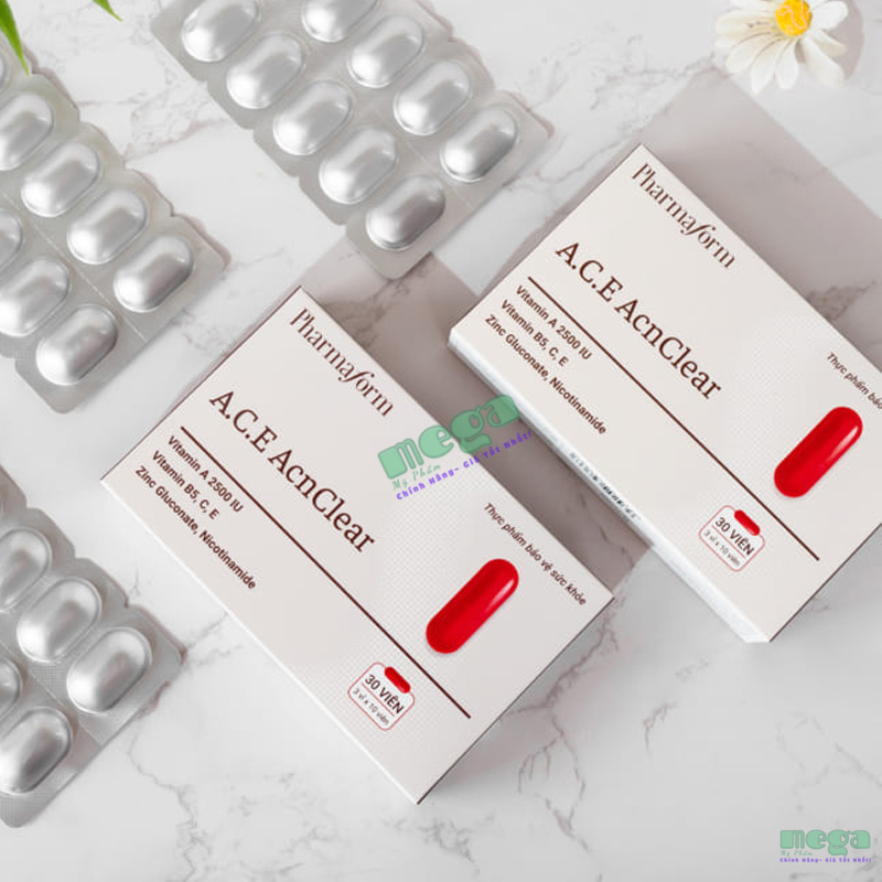A.C.E AcnClear là viên uống kết hợp Vitamin A hàm lượng cao và Acid Amin, giúp hỗ trợ chống oxy hóa, làm chậm quá trình lão hóa da và cải thiện làn da khỏe mạnh. Sản phẩm còn đặc biệt hiệu quả trong việc kiềm dầu, hỗ trợ điều trị mụn viêm, mụn trứng cá, mang lại làn da mịn màng, sạch mụn.