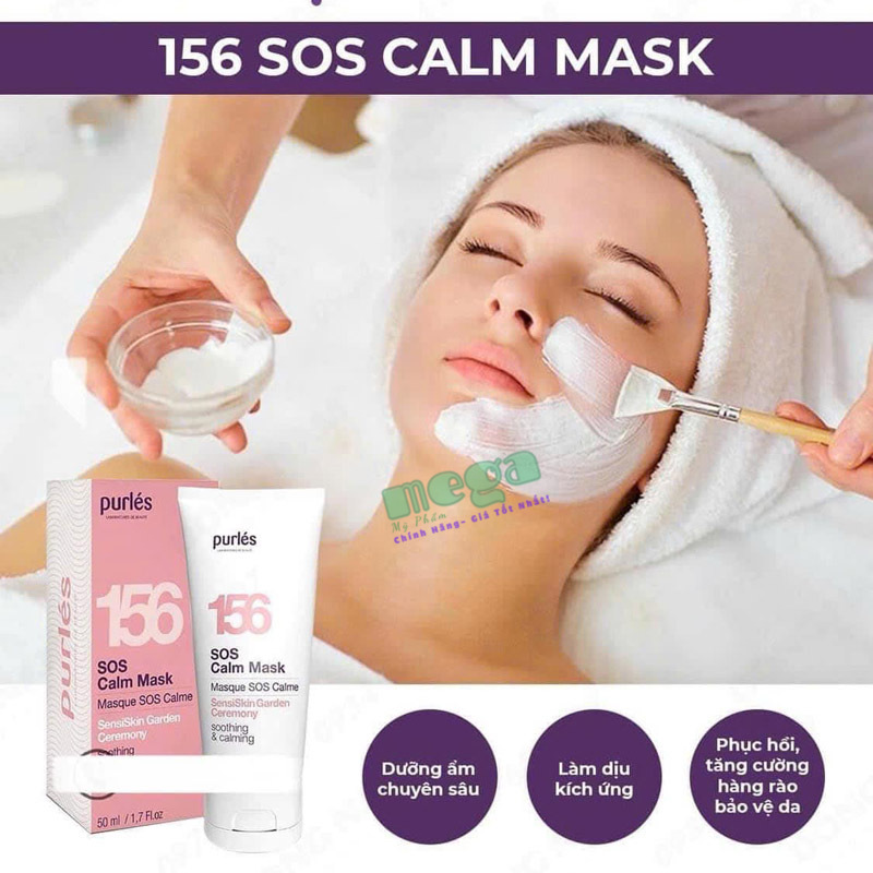 Purles 156 SOS Calm Mask là mặt nạ cấp ẩm cho da khô, da nhảy cảm có chiết xuất đậm đặc, trong công thức có trong công thức gel của mặt nạ như squalane và chiết xuất tảo biển nâu, làn da sẽ đàn hồi và ẩm mượt hơn mà không có dấu hiệu mệt mỏi.