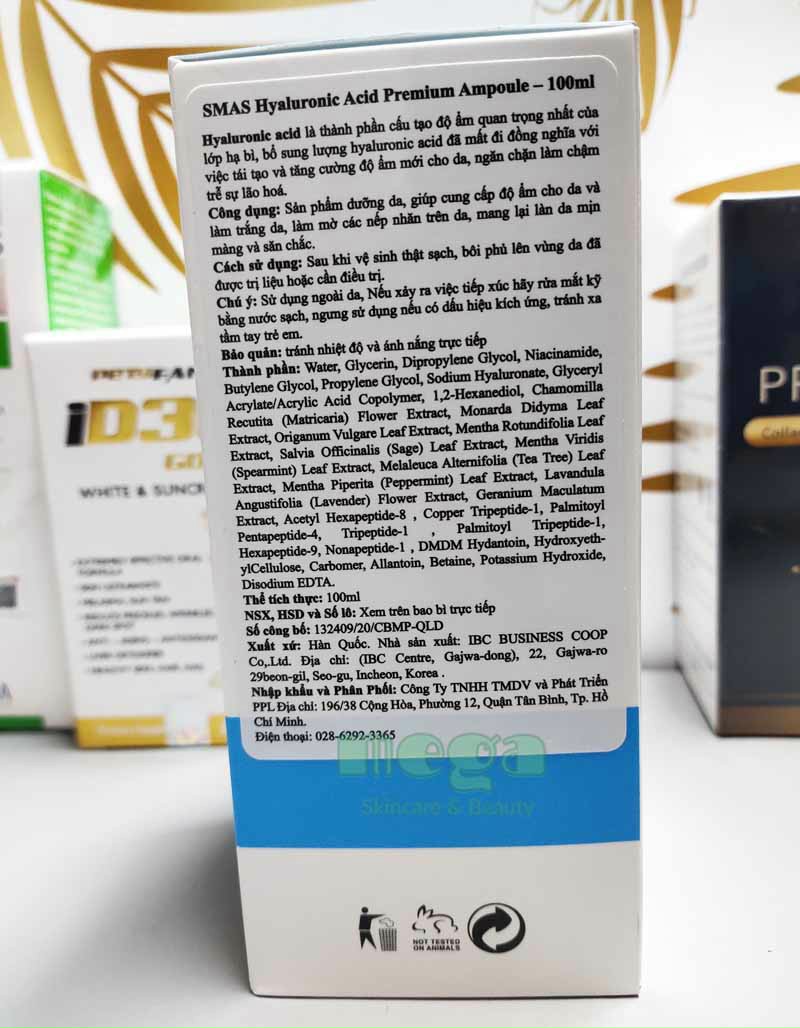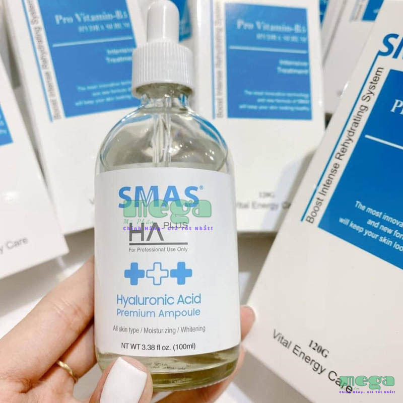 - Axit hyaluronic trong SMAS HA Plus Hyluronic Acid được tăng cường đặc biệt và cho phép niacinamide hoạt động để giúp làm đều màu da đồng thời cải thiện nhanh chóng vẻ ngoài của da.