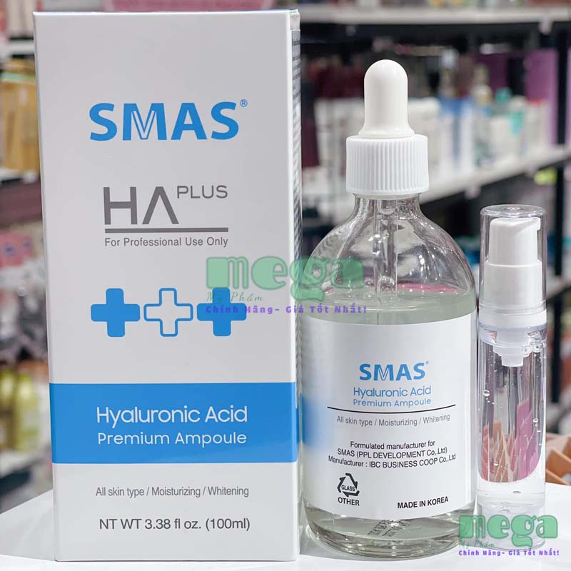 Serum Cấp Ẩm HA Plus SMAS là dòng sản phẩm dưỡng ẩm và trẻ hóa đến từ thương hiệu mỹ phẩm Hàn Quốc SMAS. Serum dưỡng ẩm này giúp tăng độ ẩm cho da, giúp da không bị khô và cải thiện khả năng giữ nước của da.