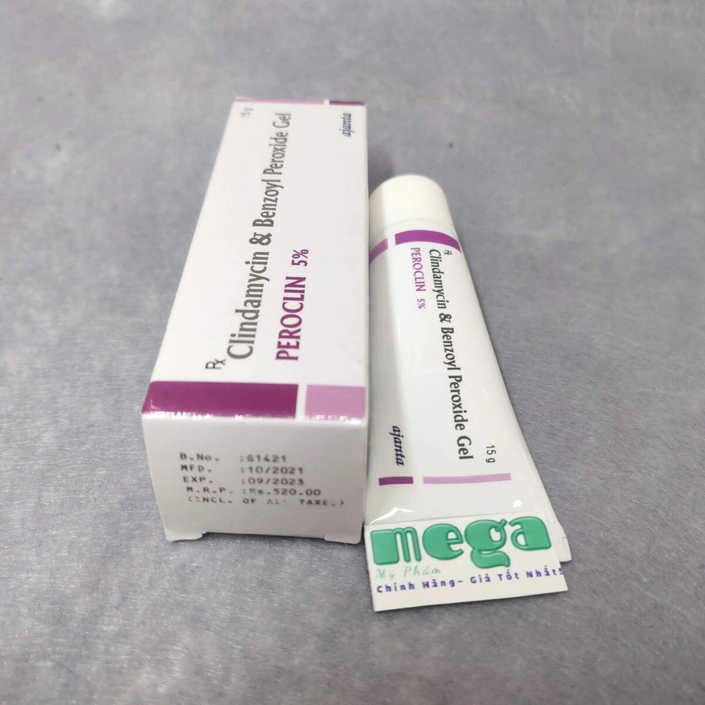 Kem Trị Mụn Peroclin 5 Gel là kem chấm mụn chứa 2,5% và 5% benzoyl peroxide và clinda.my.ci giúp giải quyết mụn, gom cồi mụn nhanh hiệu quả. Giúp da sạch mụn chỉ sau 4- 7 ngày sử dụng.